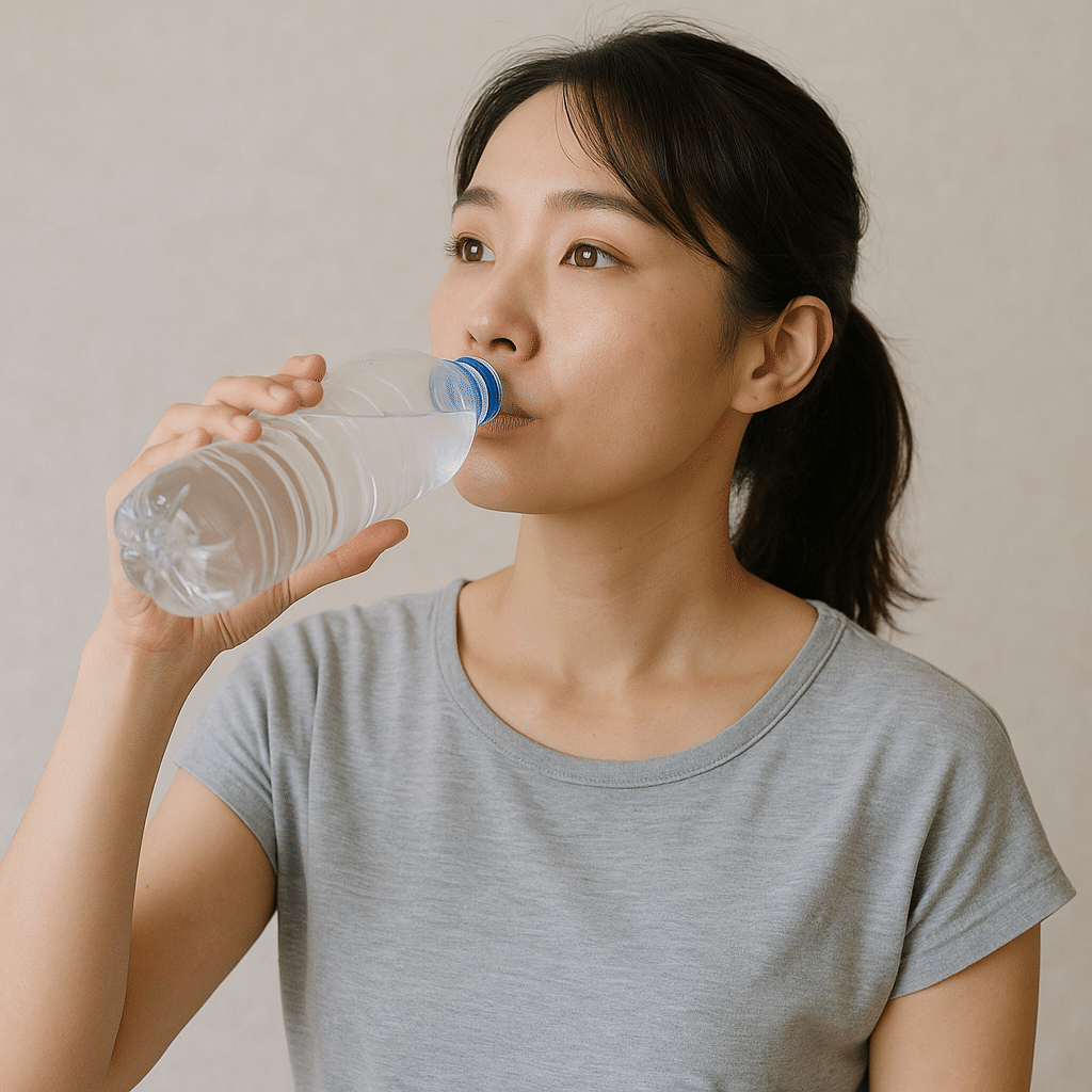 「むくむから水を控える」は逆効果。常温の水やお茶をこまめに飲むことで、老廃物排出がスムーズになります。特にカフェインレスの麦茶やルイボスティーはおすすめです。