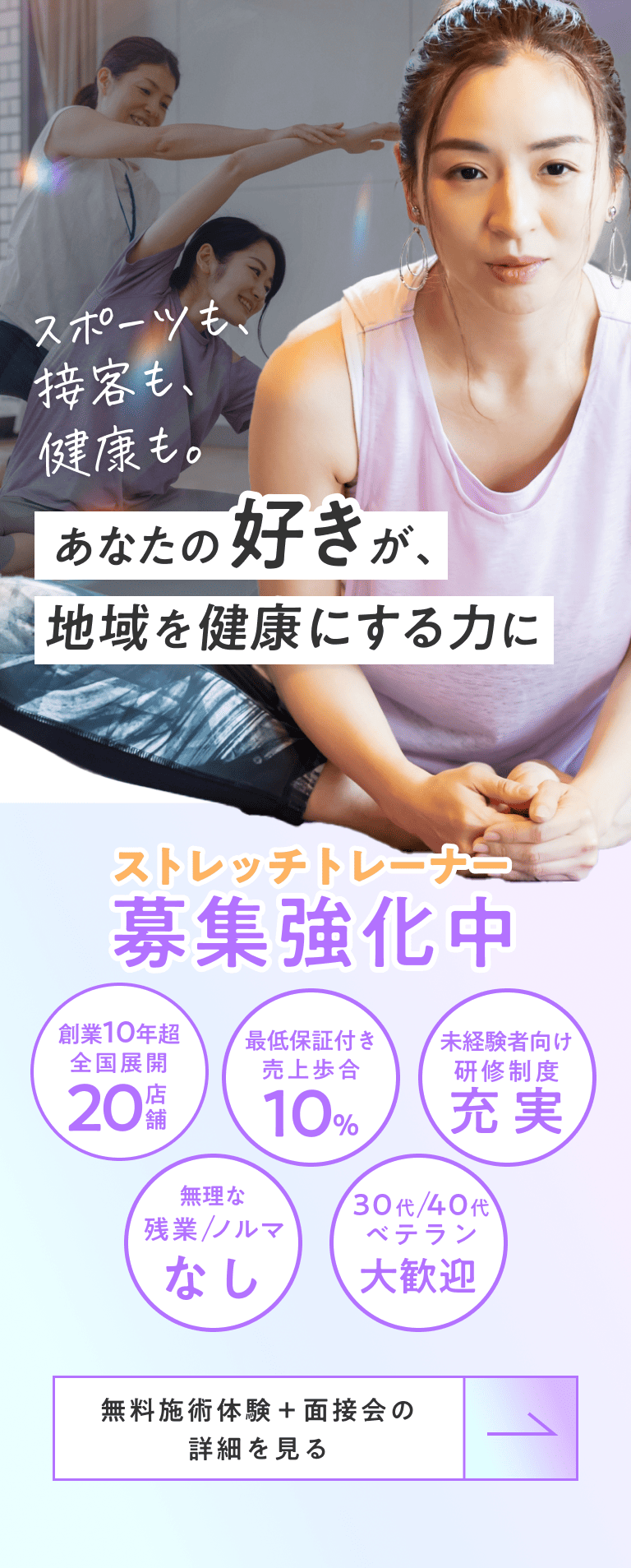 創業10年超、全国20店舗超、書籍2作、WEBサイトやYouTubeで健康&ストレッチ情報配信など、広く皆様の健康増進に貢献するブランドです。